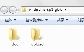 1、下载DirCMS最新版并解压。将刚才下载的zip压缩包解压后,里面有两个文件夹:doc和upload,如图: