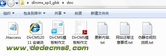 其中:Doc文件夹存放的是一些程序安装说明文档,作为站长使用DirCMS时的操作参考文档。该文件夹不需要上传到服务器。如图: