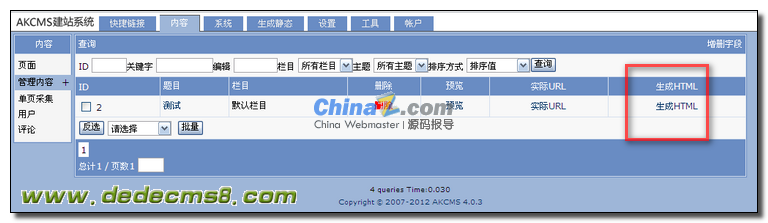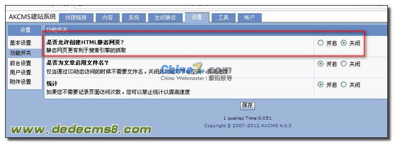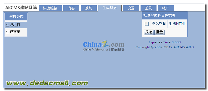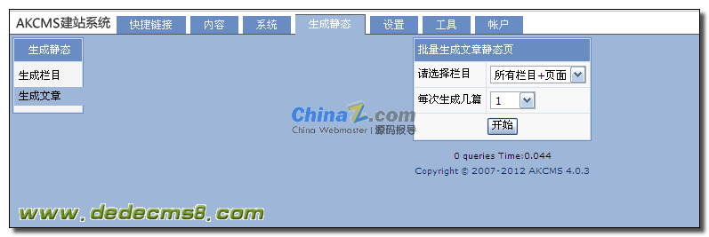 AKdedecms8.com">dedecms8.com">CMS支持把页面生成为静态页,也支持一部分页面静态一部分页面动态。