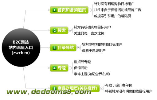 当将用户流量细分后,我们该细分站内流量了,比如图书B2C,走搜索的用户和走频道首页的用户,用户行为完全不一样,一个是有明确购买意图的主动型用户,一个是有购书欲望但没有明确购买意图的被动型用户,比如他有20元优惠券快到期了,但不知该买啥。比如后面这类用户,你给他图书排行榜或是图书专题,他可能就下手了。