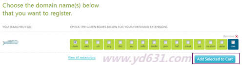 第三步,确定域名未被注册,点击 ADD SELECTED TO CART.