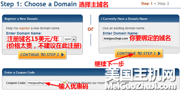 第二步,主域名和优惠码: