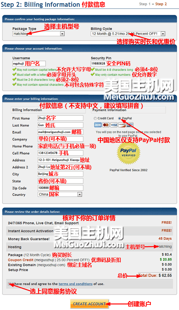 因为每家网银支付步骤不同,美国主机网就不再详述了。网银支付中会按照你需支付给HostGator的美元兑换为人民币。网银支付完毕后,会再转向到PayPal,付款状态为完成了付款就OK了!然后打开你的邮箱收取开通信就行了,里面有管理密码。如果HostGator要求身份验证,把身份证扫描件发送给HostGator就行了。