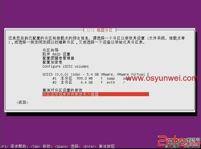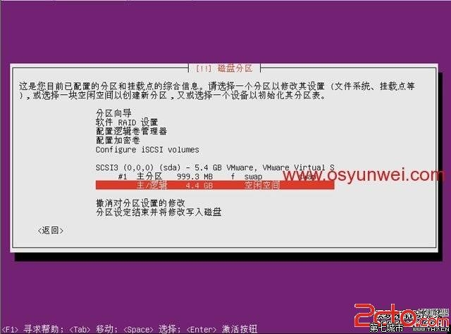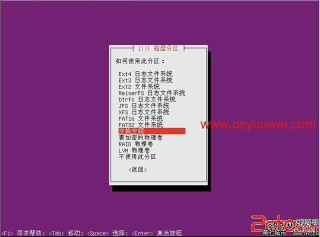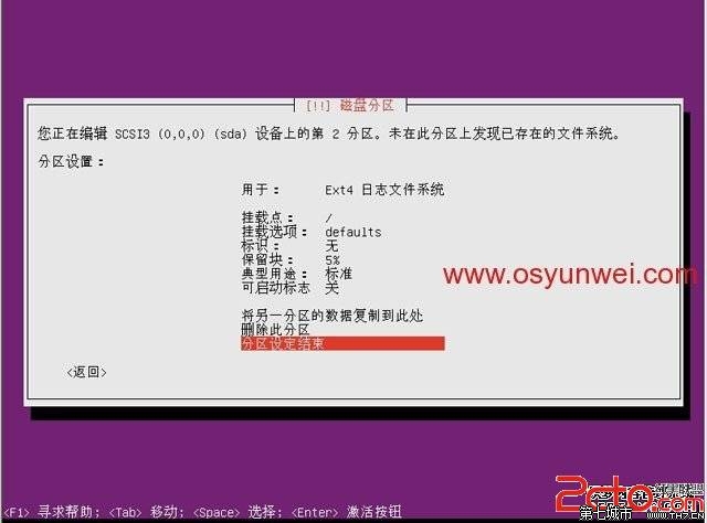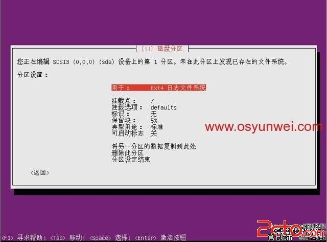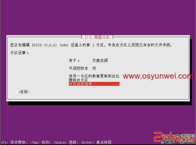 点分区设定结束,这样就设置好了swap分区(一般为内存大小的2倍),继续重复上面的步骤,在划分一个根分区