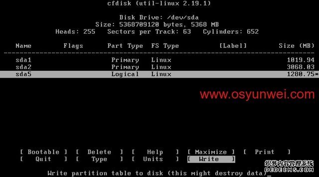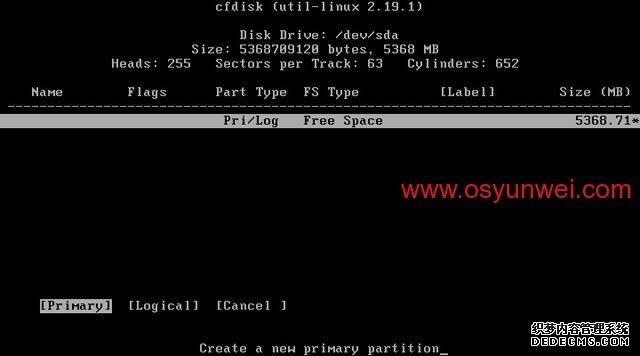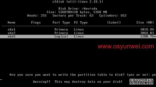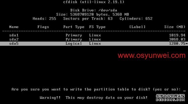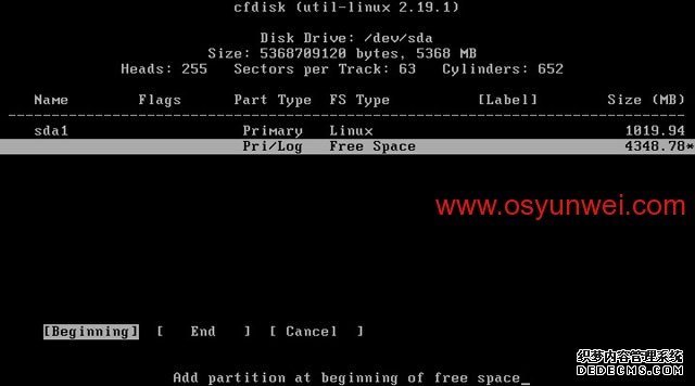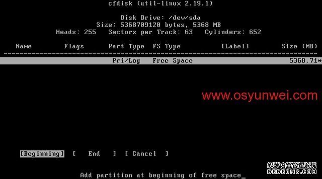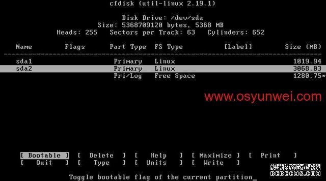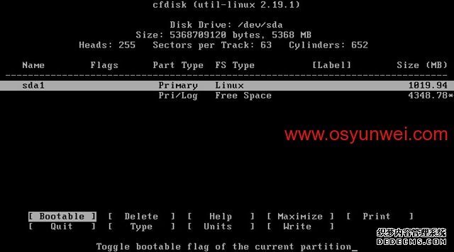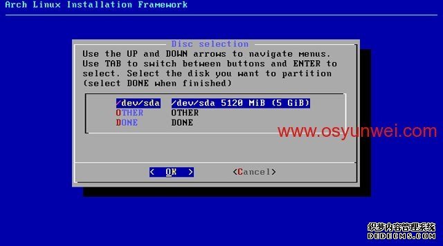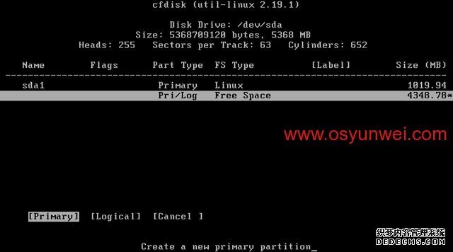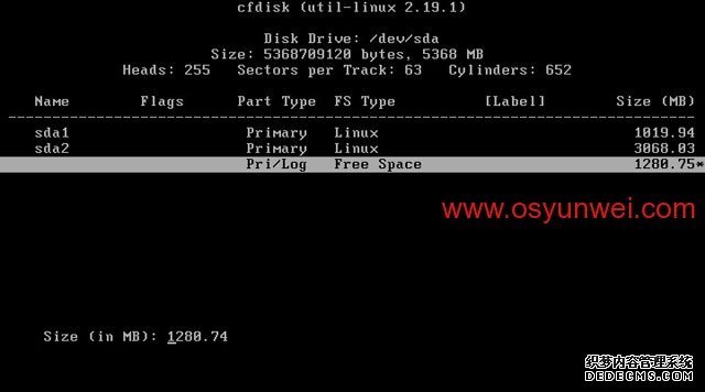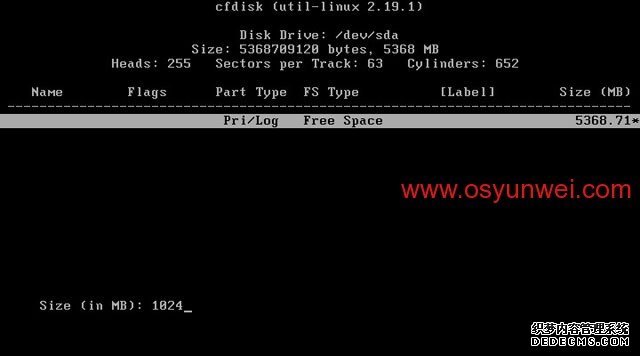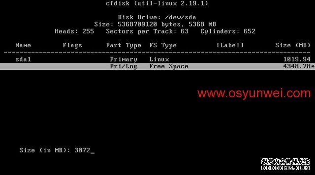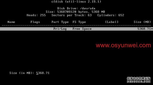 选中第一个/dev/sda这里显示的是硬盘信息