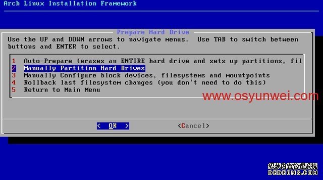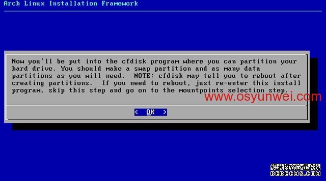 默认OK,进入分区界面