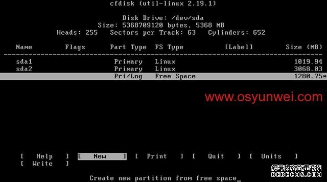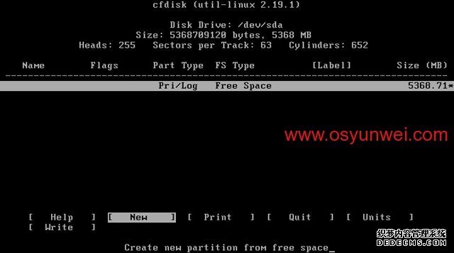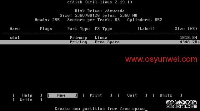 用方向键选中Free Space(剩余空间),选择New