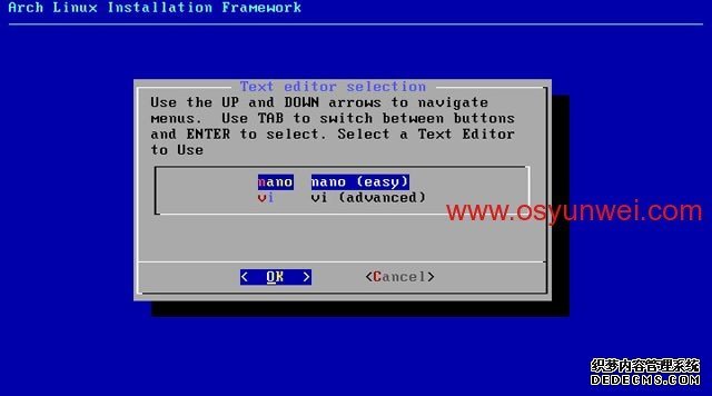 选择nano(备注:你也可以选择vi,建议大家选择nano)