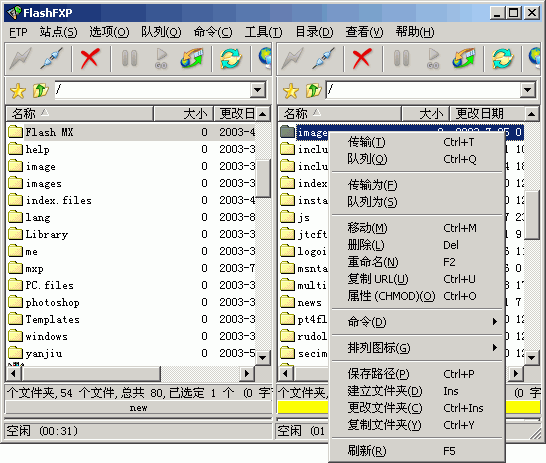 FlashFXP是一款功能强大的FXP/FTP软件,如果你使用其它ftp工具受到挫折,就改用这款好用的软件吧(我使用的是FlashFXP 织梦吧下载: http://cid-dd66edf809bb1577.office.live.com/self.aspx/dedecms8/FlashFXP%5E_3.7.9.1348%5E_Beta%5E_SC.rar)。FlashFXP使用简单,并且有汉化版。