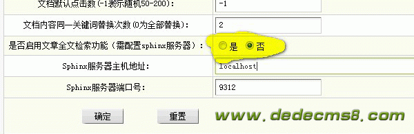 用超级管理员的身份登录网站后台,点击【系统】选项卡,进入“系统基本参数”页面,点击“其它选项”,找到“是否启用文章全文检索功能(需配置sphinx服务器):”项目,将其设置为“否”,保存即可。如下图: