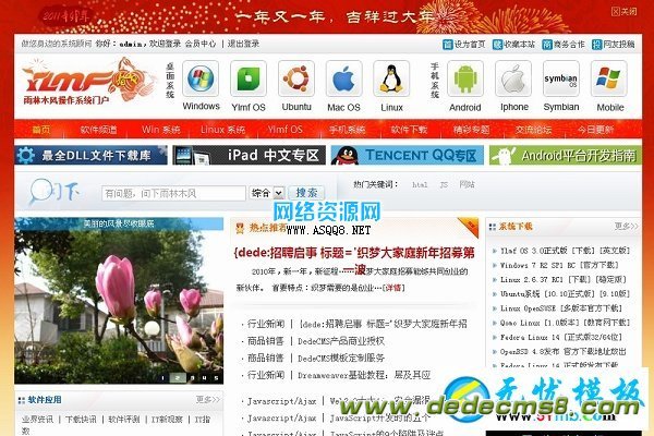 本套模板是基于DedeV5.6GBK最新版制作,通过对目标站雨林木风系统站(www.ylmf.net)的仿制,现将全站模板打包免费共享。