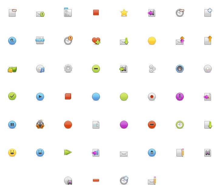 此专辑共含105张尺寸为32x32像素的105个实用质感PNG图标素材。