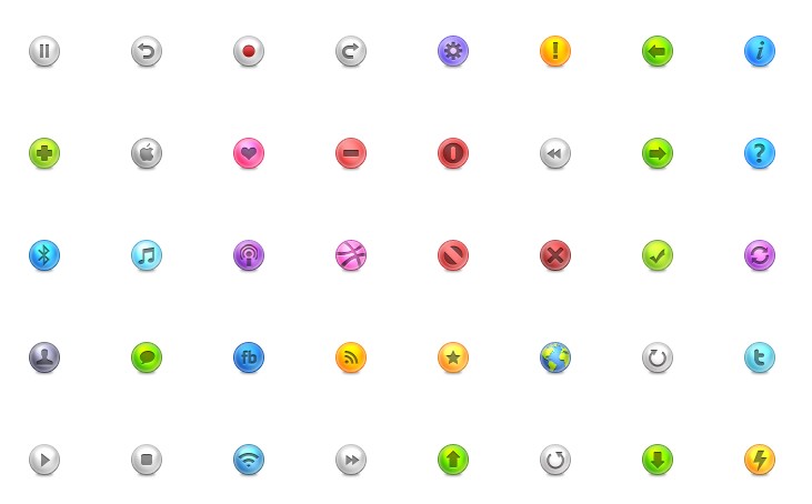 此专辑共含40张尺寸为32x32像素的40个圆形实用PNG图标素材。
