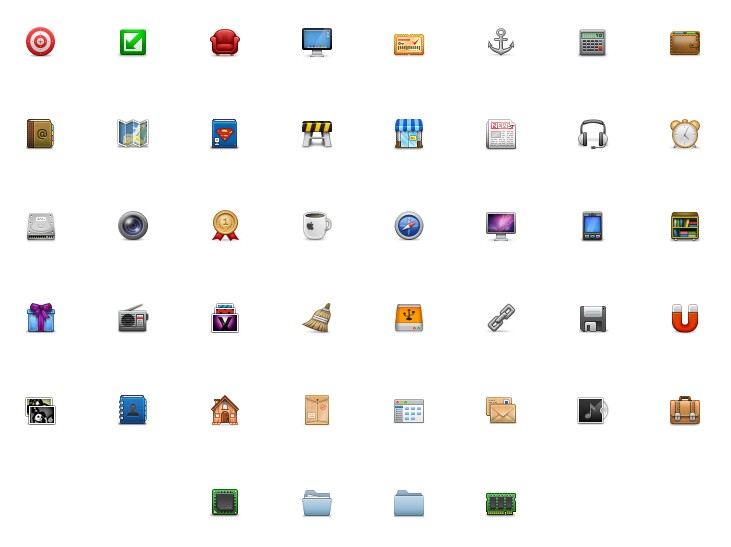 此专辑共含44张尺寸为32x32像素的44个精致常用PNG图标素材。