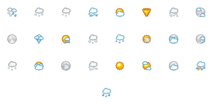 此专辑共含25张尺寸为32x32像素的25个天气预报PNG图标素材。