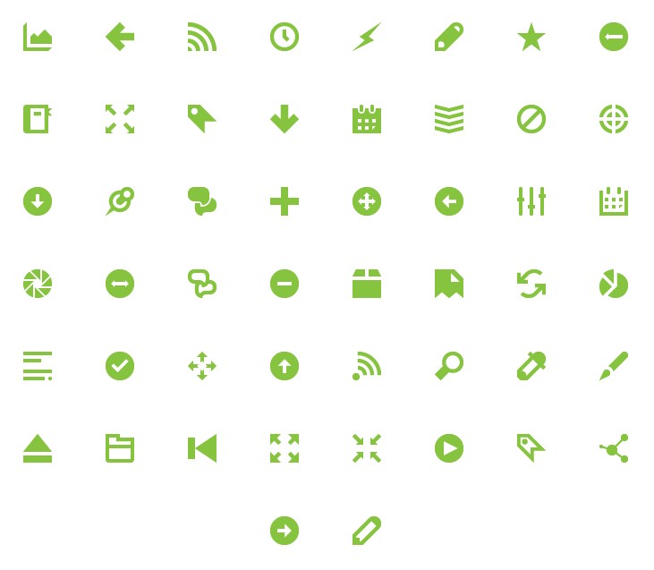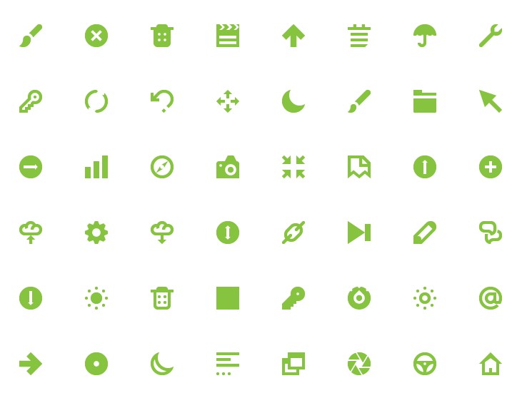此专辑共含98张尺寸为32x32像素的绿色常用简洁PNG图标素材。