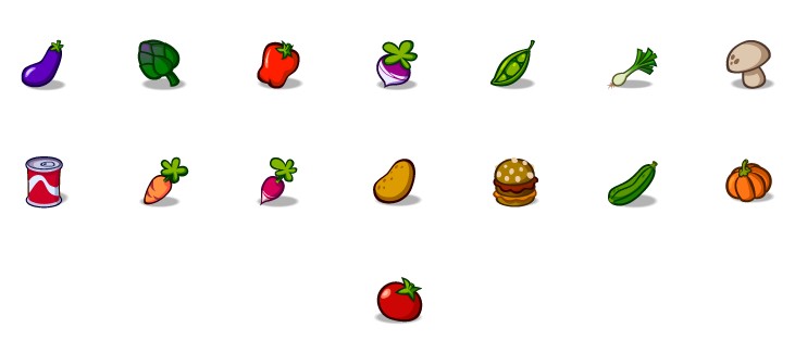 此专辑共含15张尺寸为48x48像素的卡通蔬菜PNG图标素材。