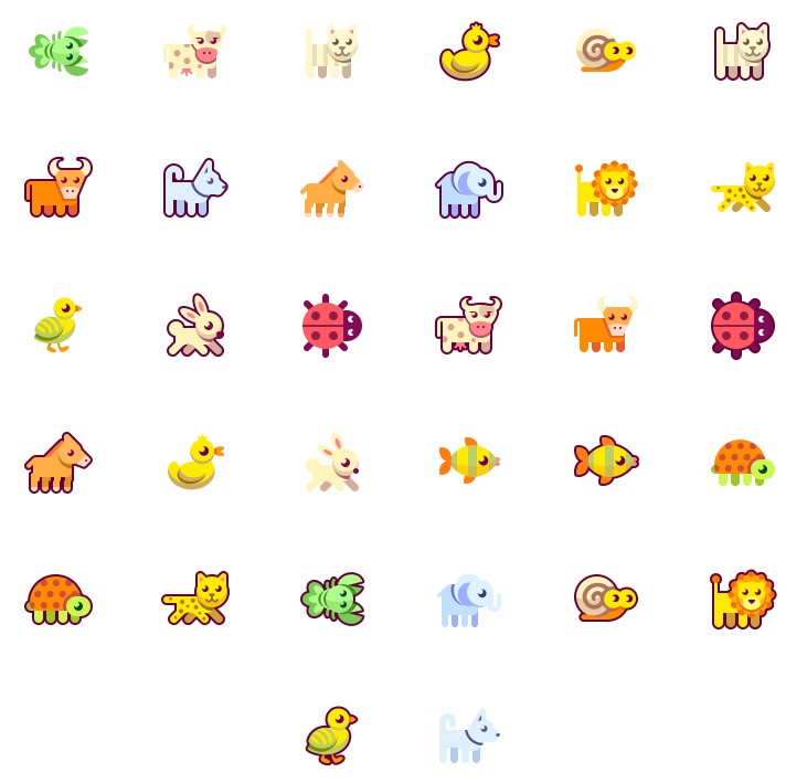 此专辑共含32张尺寸为64x64像素的32个可爱小动物PNG图标素材。