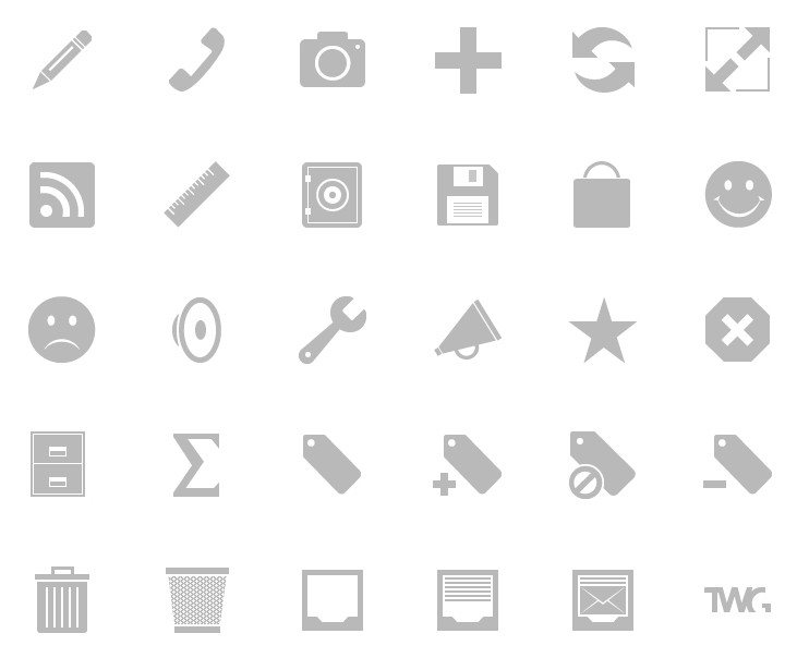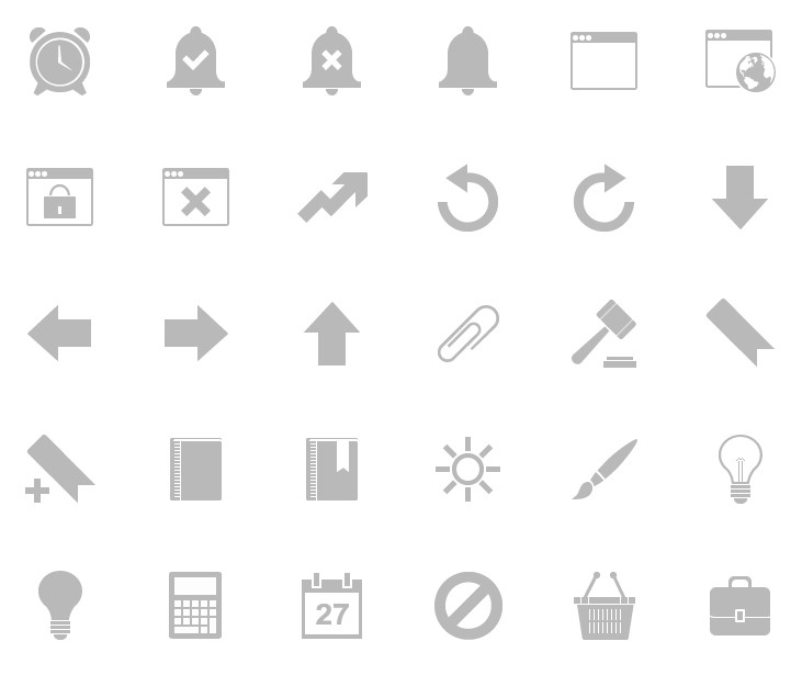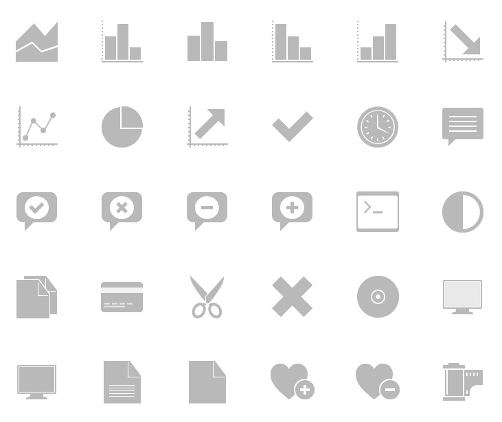 此专辑共含147张尺寸为64x64像素的灰色简洁PNG图标素材。