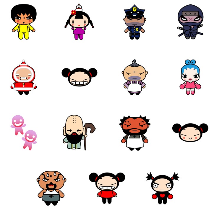 此专辑共含15张尺寸为128x128像素的中国娃娃和她的朋友PNG图标素材。