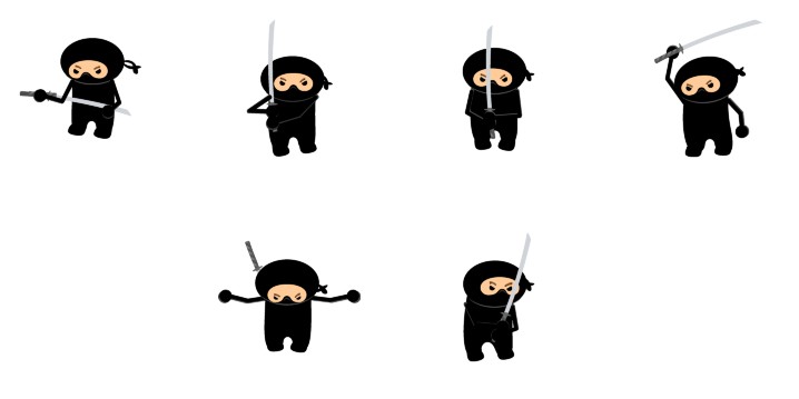 此专辑共含6张尺寸为128x128像素的卡通忍者PNG图标素材。