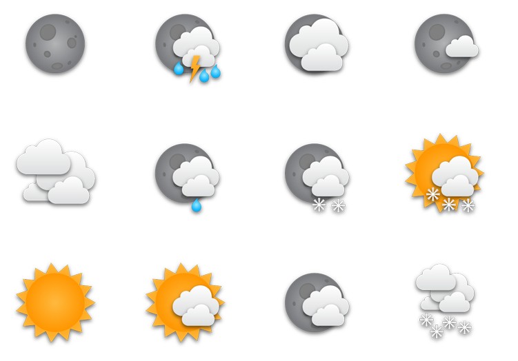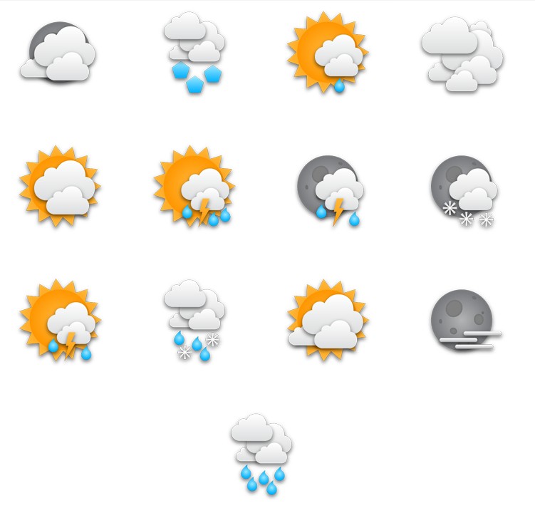 此专辑共含37张尺寸为128x128像素的橘色天气预报PNG图标素材。