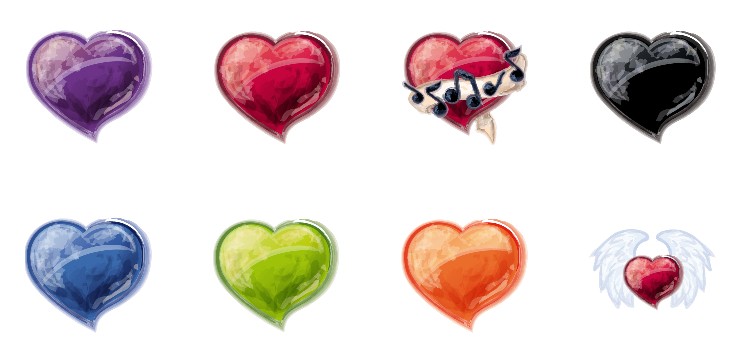 此专辑共含8张尺寸为128x128像素的手绘爱心PNG图标素材。