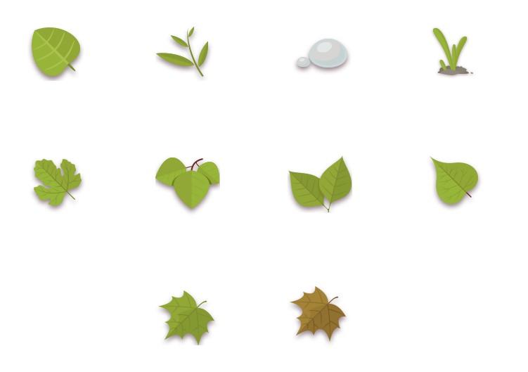 此专辑共含10张尺寸为128x128像素的春天绿色叶子PNG图标素材。