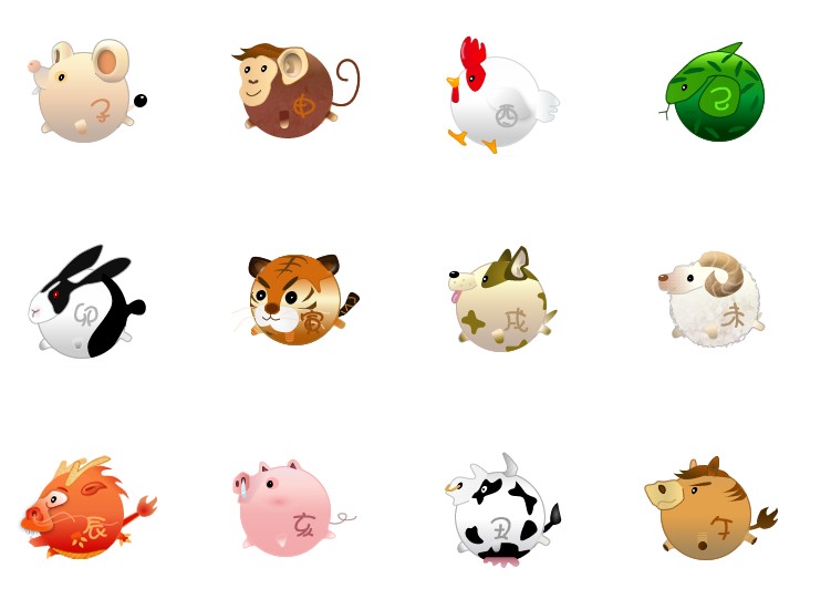 此专辑共含12张尺寸为128x128像素的胖12生肖PNG图标素材。