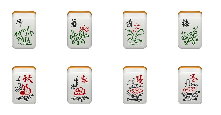 此专辑共含8张尺寸为128x128像素的麻将梅兰竹菊PNG图标素材。