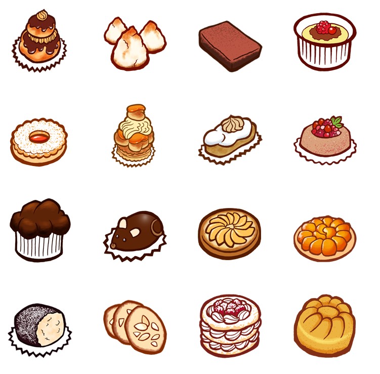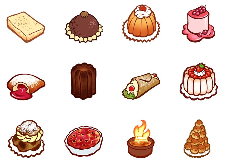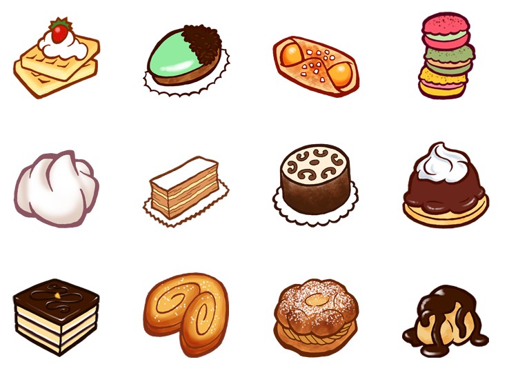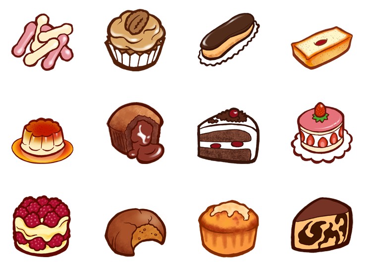 此专辑共含52张尺寸为128x128像素的蛋糕甜点PNG图标素材。