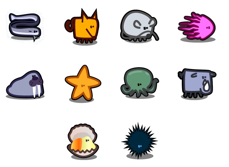此专辑共含10张尺寸为128x128像素的海底动物PNG图标素材。