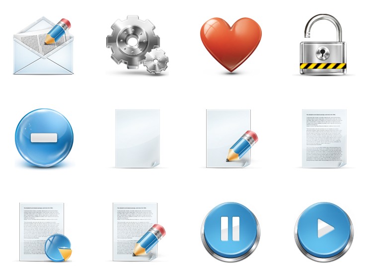 此专辑共含30张尺寸为128x128像素的高光质感心星PNG图标素材。