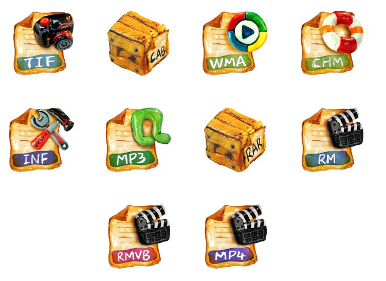 此专辑共含70张尺寸为128x128像素的彩陶电脑PNG图标素材。