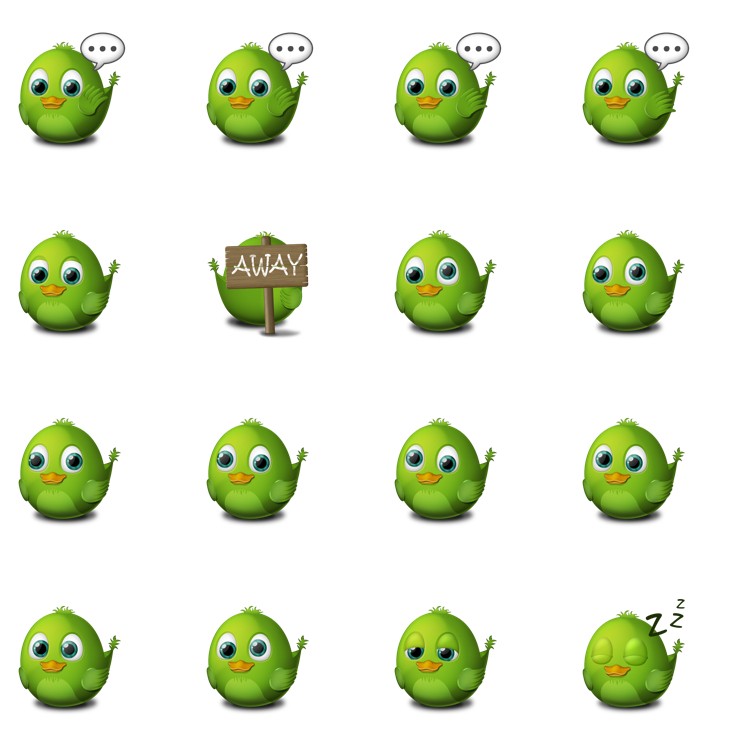 此专辑共含16张尺寸为128x128像素的绿色小鸟PNG图标素材。
