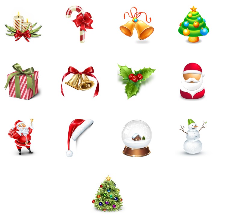 此专辑共含13张尺寸为128x128像素的精美的圣诞节PNG图标素材。