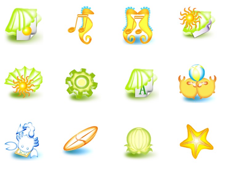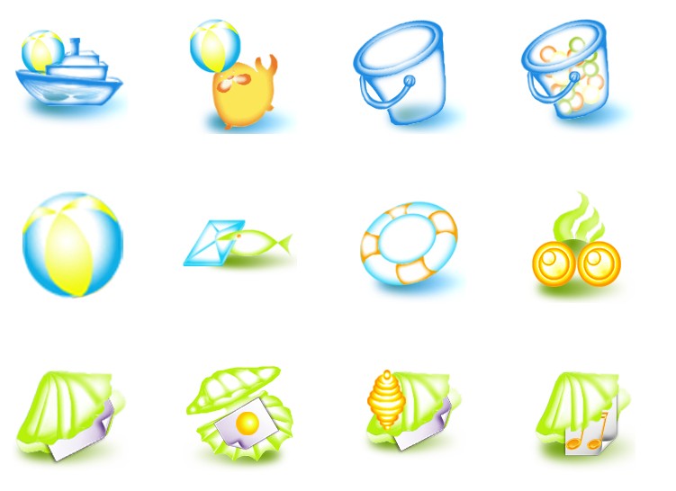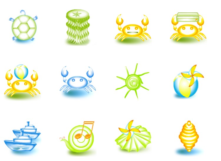 此专辑共含44张尺寸为128x128像素的夏日海滨海底动物系统PNG图标素材。