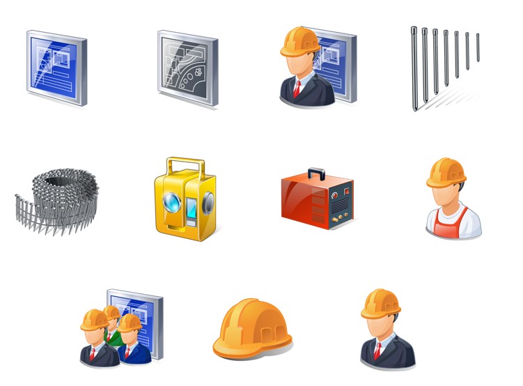 此专辑共含11张尺寸为128x128像素的建筑公司角色PNG图标素材。