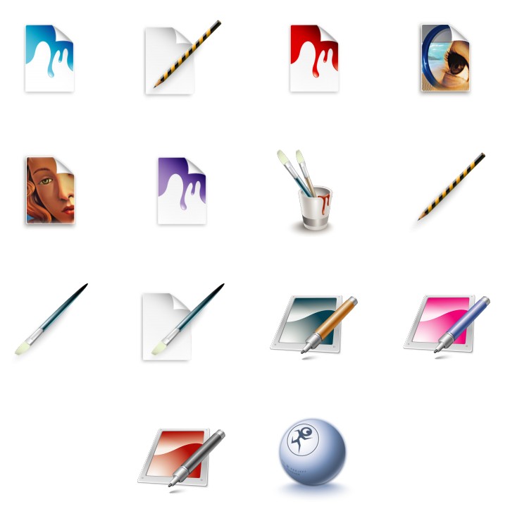 此专辑共含14张尺寸为128x128像素的各种各样的画笔PNG图标素材。