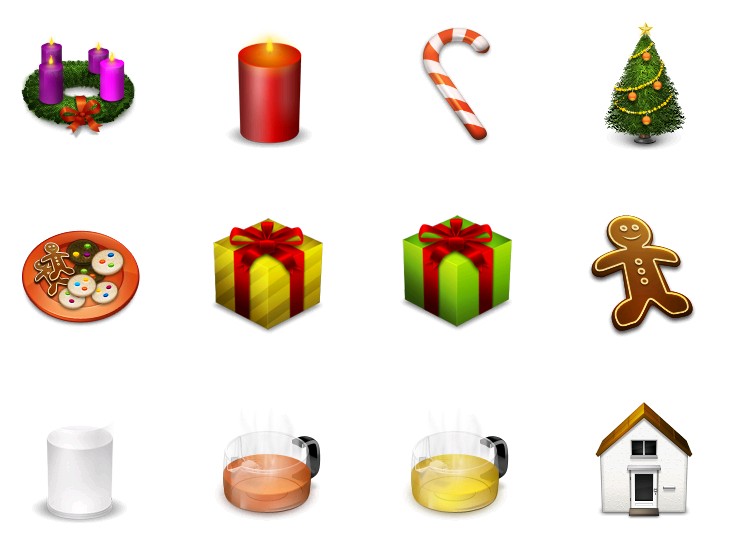 此专辑共含31张尺寸为128x128像素的快乐圣诞节礼物装饰PNG图标素材。