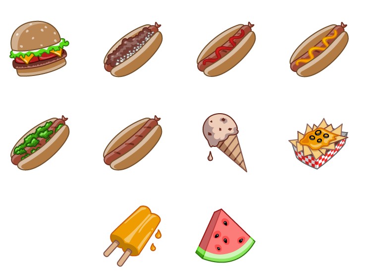 此专辑共含10张尺寸为128x128像素的美味食品汉堡PNG图标素材。
