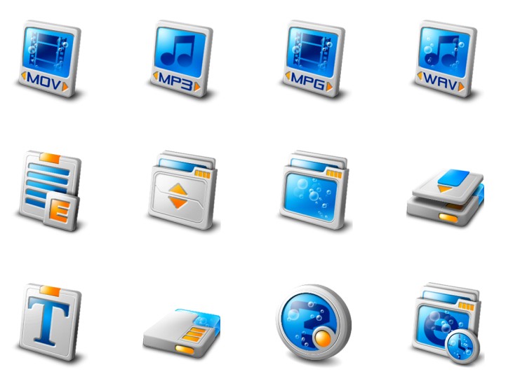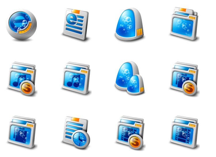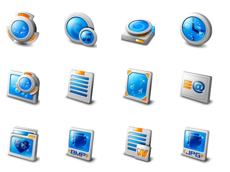 此专辑共含45张尺寸为128x128像素的蓝色风格可爱系统桌面PNG图标素材。