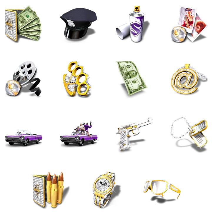 此专辑共含15张尺寸为128x128像素的闪闪发光的日常生活用品PNG图标素材。