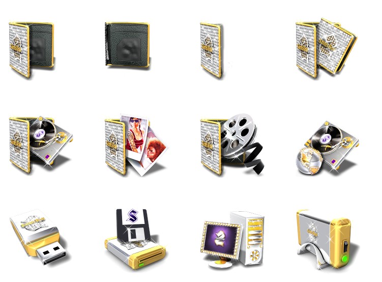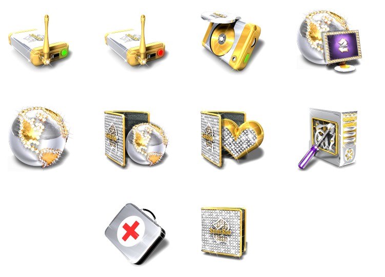 此专辑共含22张尺寸为128x128像素的黄金风格华丽系统桌面PNG图标素材。
