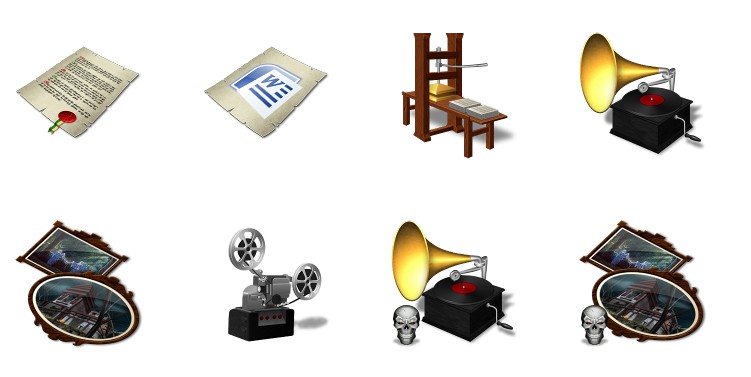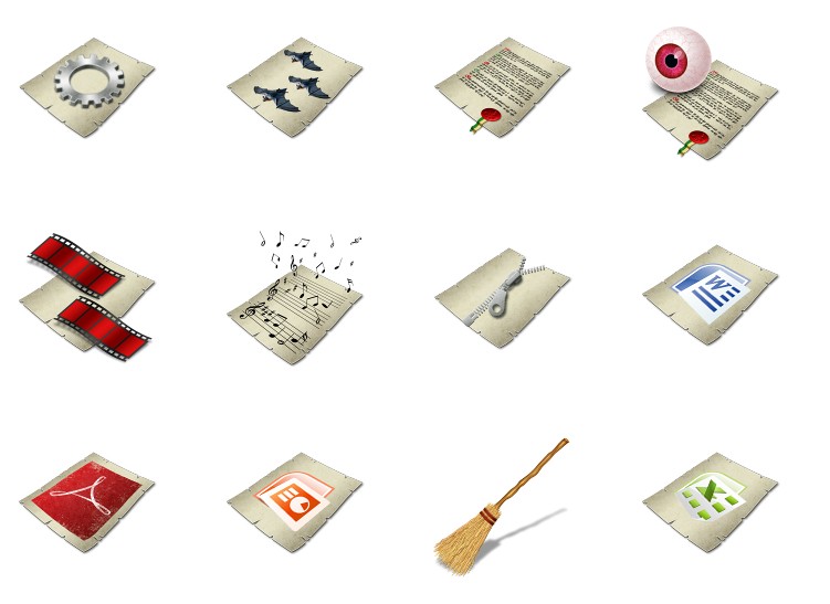 此专辑共含32张尺寸为128x128像素的复古古怪的系统桌面PNG图标素材。