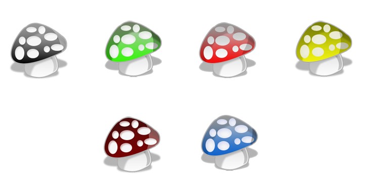 此专辑共含6张尺寸为128x128像素的彩色卡通蘑菇PNG图标素材。
