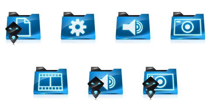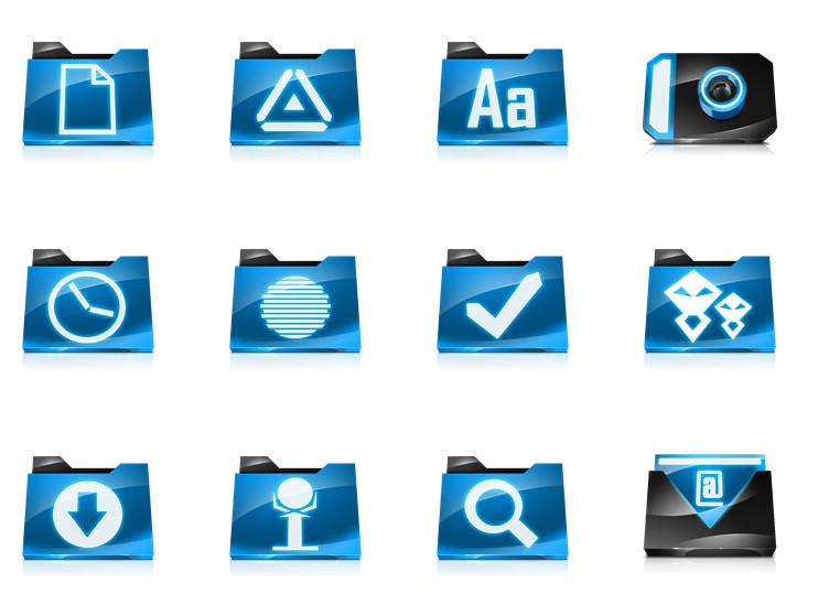 此专辑共含19张尺寸为128x128像素的蓝色经典桌面文件夹PNG图标素材。