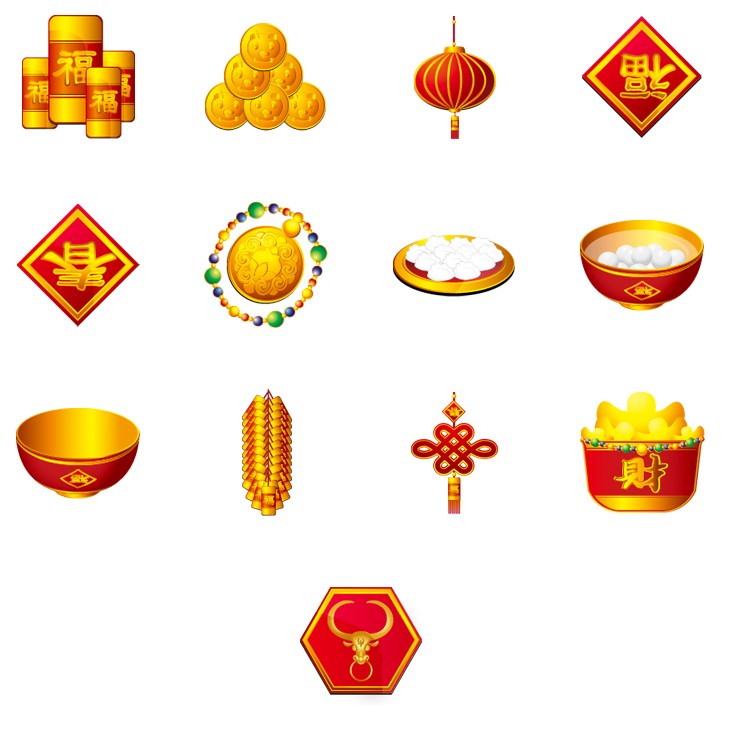 此专辑共含13张尺寸为128x128像素的牛年祝贺新年PNG图标素材。