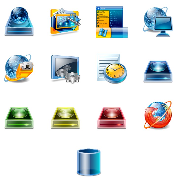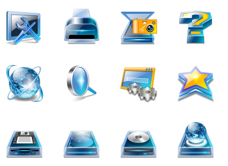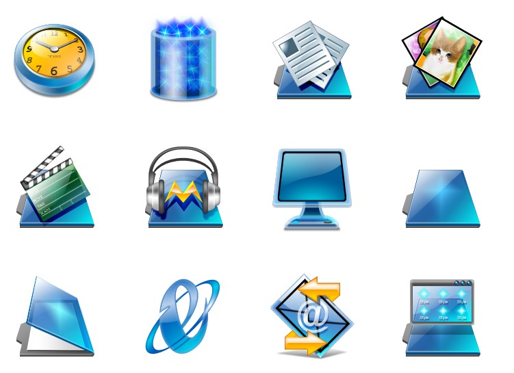 此专辑共含37张尺寸为128x128像素的蓝色系统桌面PNG图标素材。