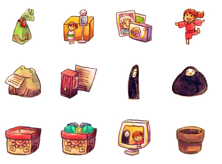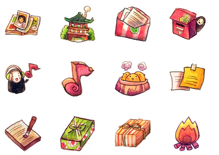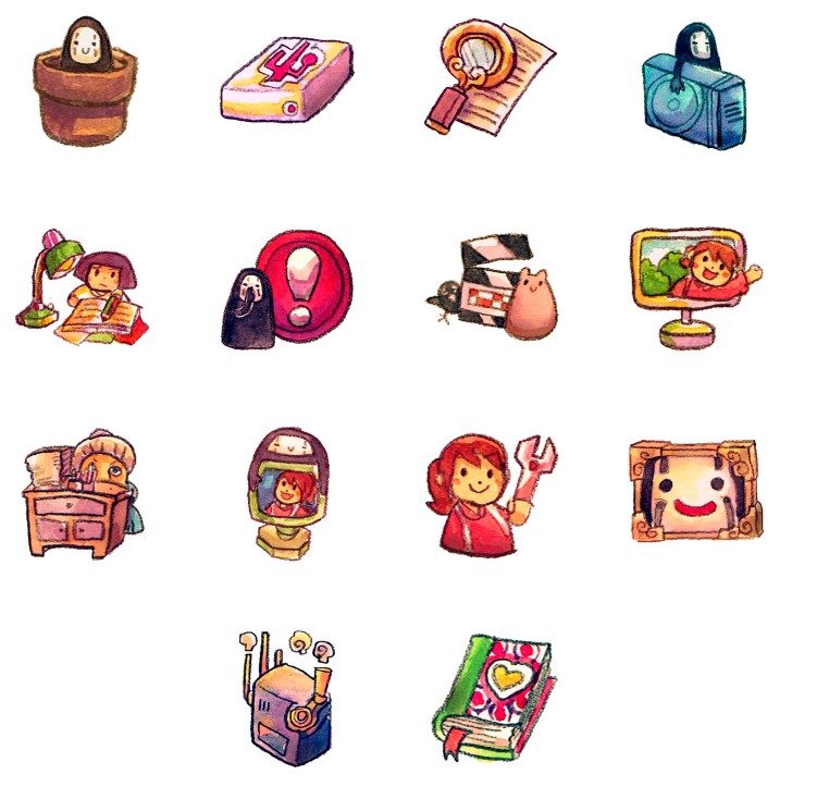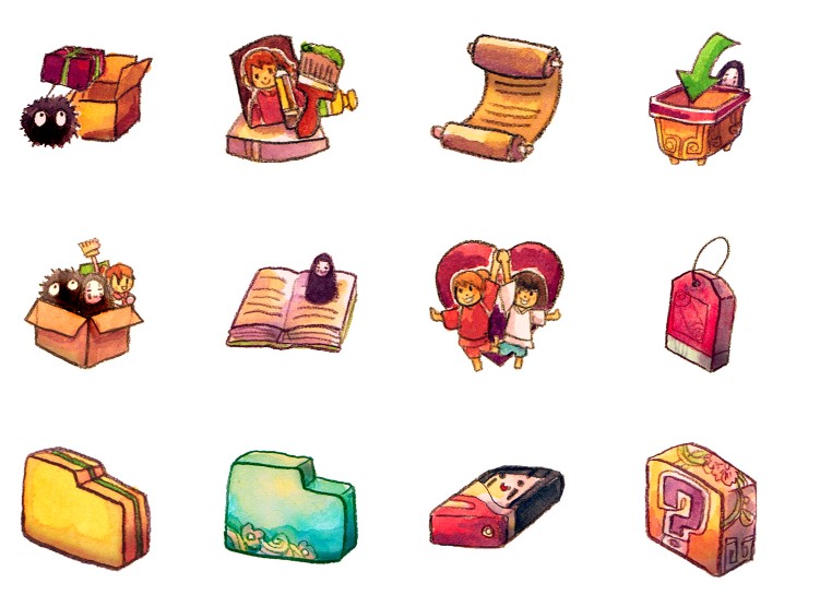 此专辑共含50张尺寸为128x128像素的蜡笔风格动画片系统桌面PNG图标素材。
